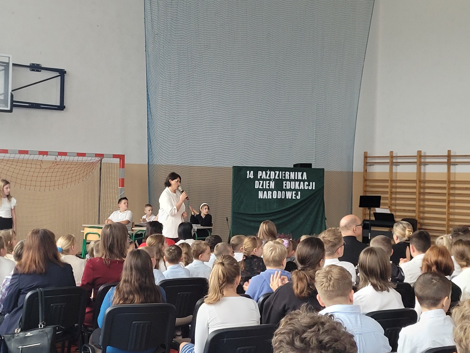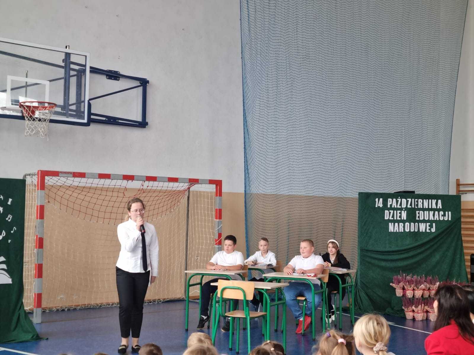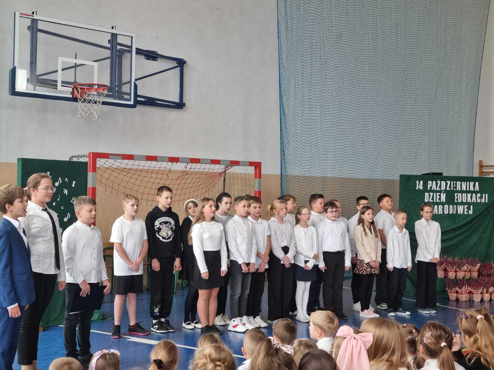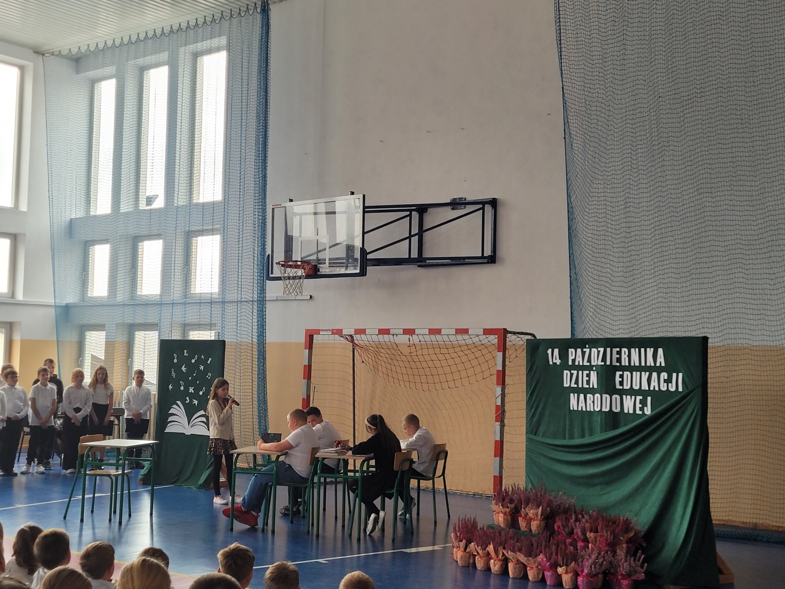 15 października bieżącego roku odbyła się w naszej Szkole uroczysta Akademia z okazji Dnia Edukacji Narodowej, potocznie nazywanym Dniem Nauczyciela. Uczniowie klasy 5a i 7b podziękowali w montażu słowno- muzycznym wszystkim pracownikom Szkoły za wkładany trud w kształcenie i wychowanie młodych pokoleń. Można było usłyszeć piosenki, wiersze i obejrzeć scenki z życia szkoły. Na zakończenie uczniowie wręczyli nauczycielom piękne wrzosy. Występ bardzo się wszystkim podobał i został nagrodzony gromkimi brawami.