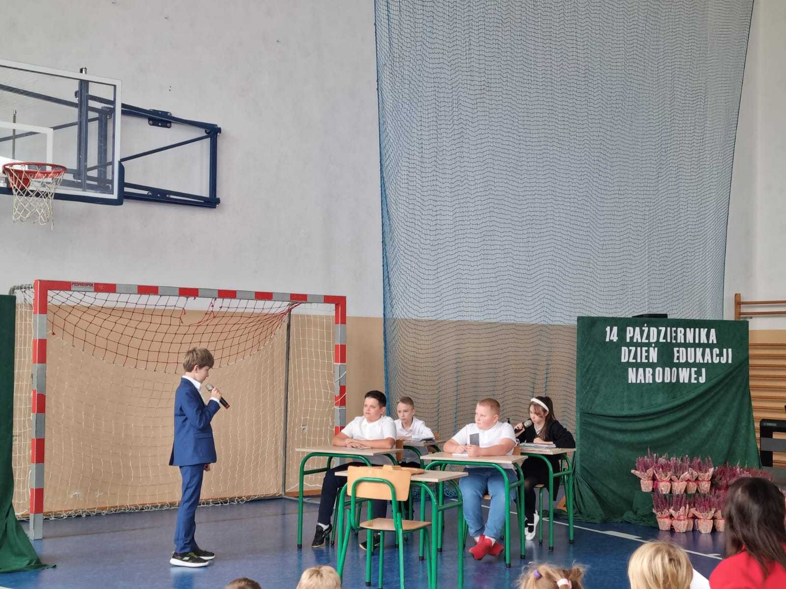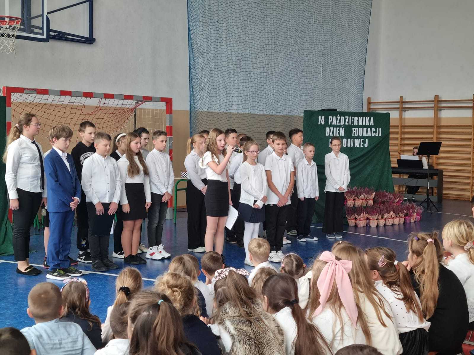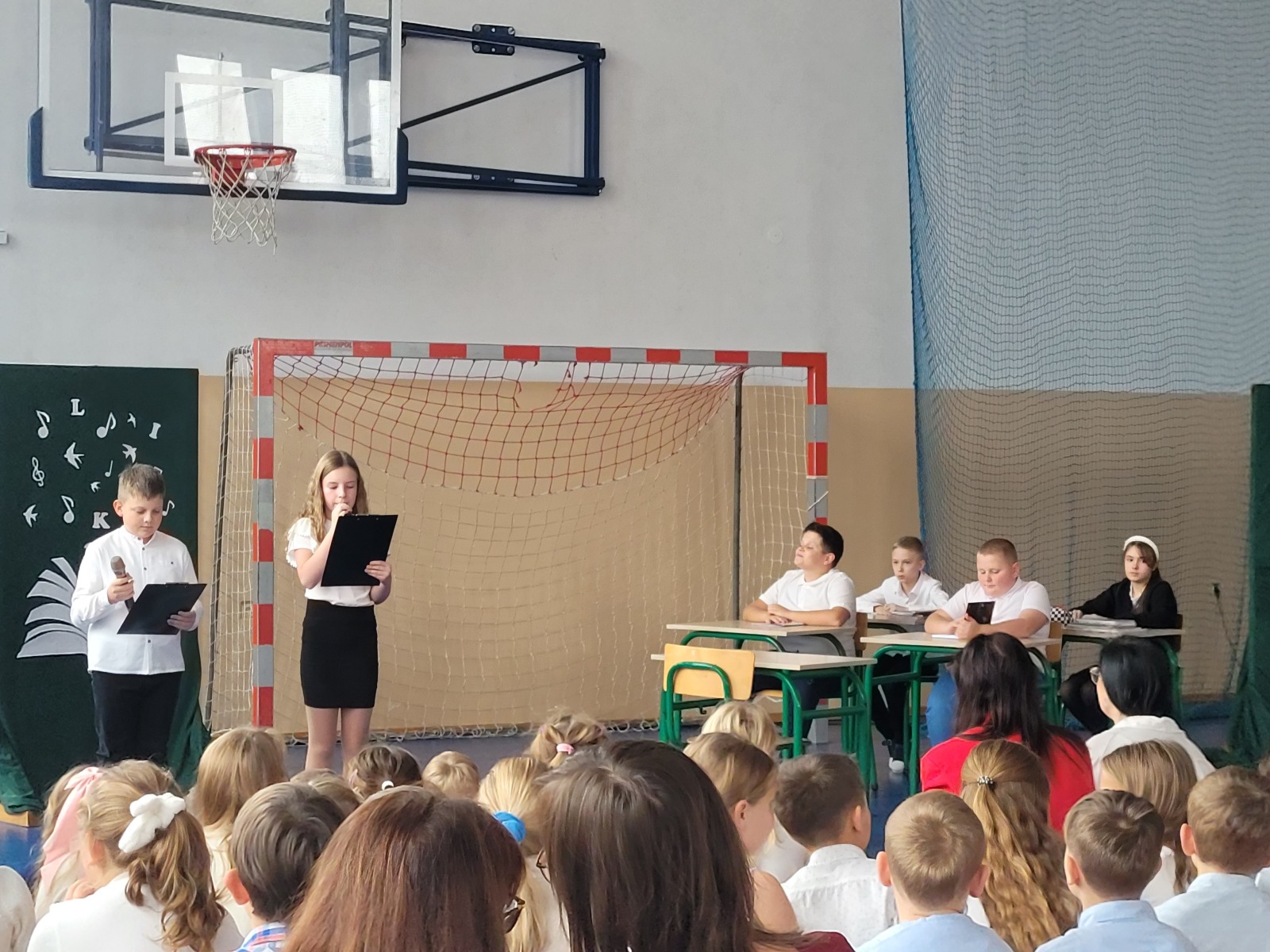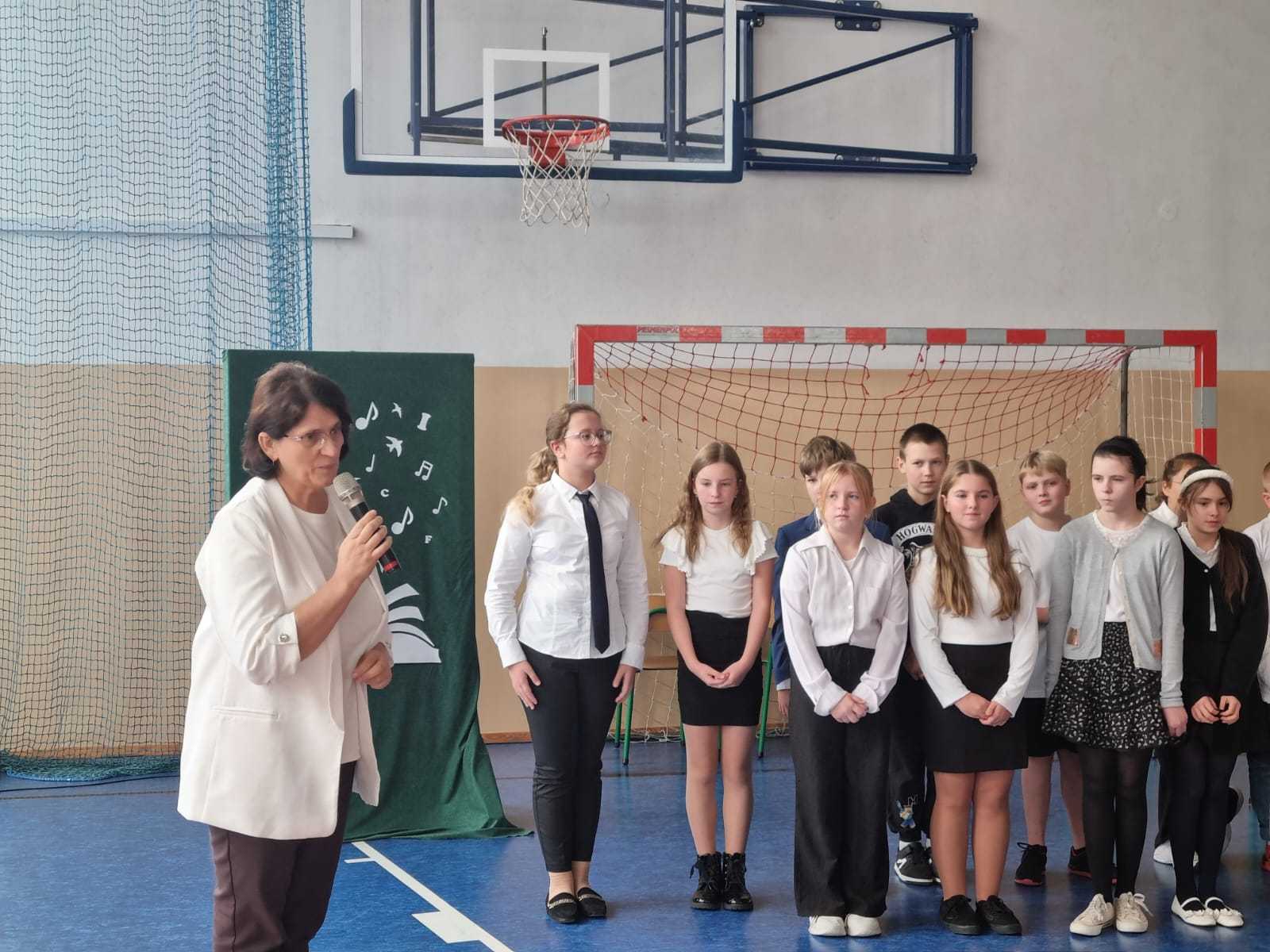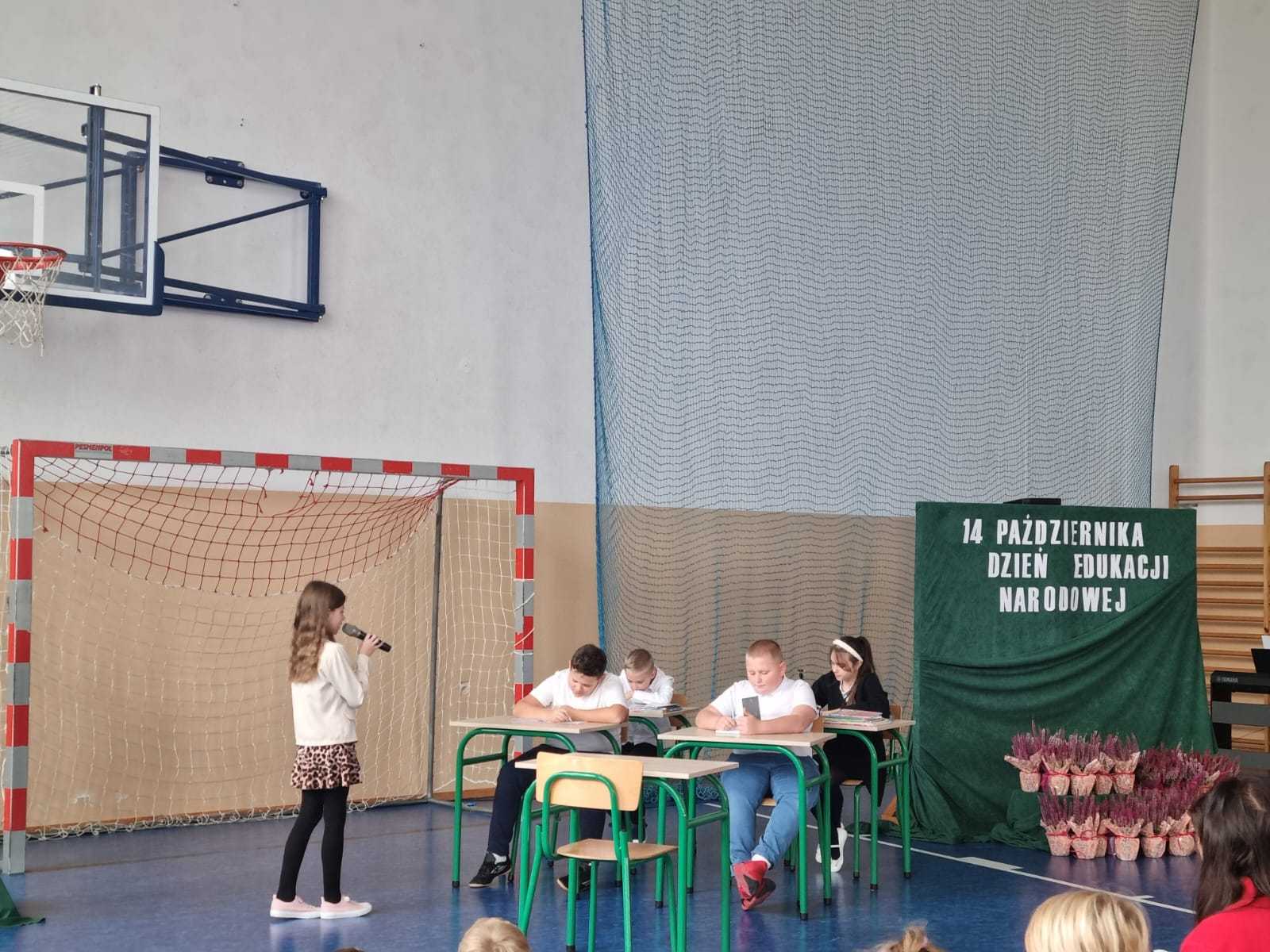 15 października bieżącego roku odbyła się w naszej Szkole uroczysta Akademia z okazji Dnia Edukacji Narodowej, potocznie nazywanym Dniem Nauczyciela. Uczniowie klasy 5a i 7b podziękowali w montażu słowno- muzycznym wszystkim pracownikom Szkoły za wkładany trud w kształcenie i wychowanie młodych pokoleń. Można było usłyszeć piosenki, wiersze i obejrzeć scenki z życia szkoły. Na zakończenie uczniowie wręczyli nauczycielom piękne wrzosy. Występ bardzo się wszystkim podobał i został nagrodzony gromkimi brawami.