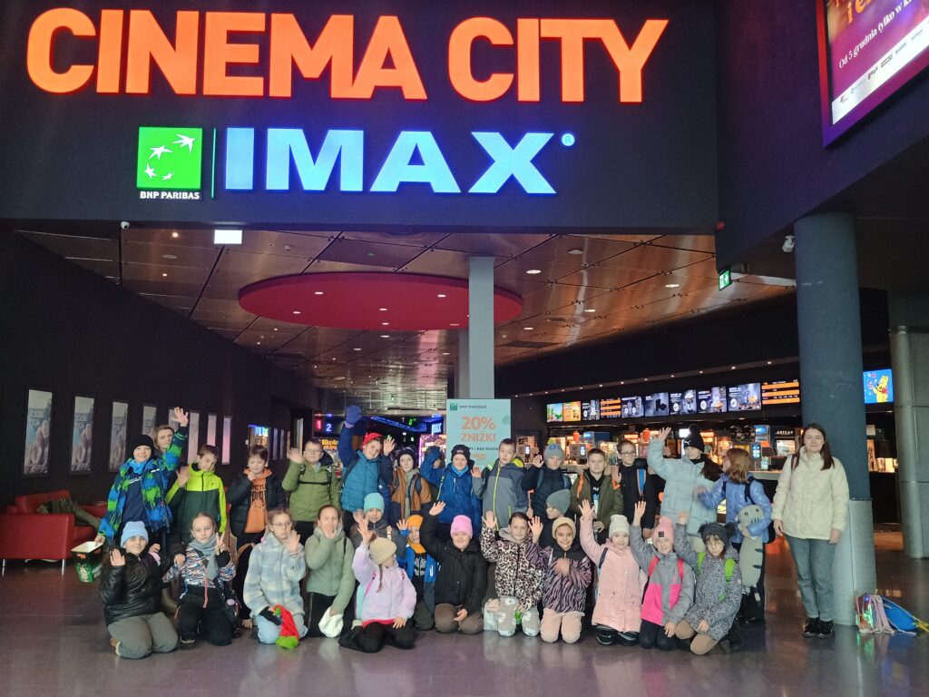 5 grudnia klasy czwarte udały się na mikołajkową wycieczkę do kina Cinema City w Krakowie na seans filmowy pt. „Mysz – masz na Święta” . Uczniowie z zaciekawieniem śledzili losy mysiej rodziny, która szykuje Boże Narodzenie w swoim wiejskim domu. Jednak wszystko się zmienia gdy pojawiają się ludzie z ogromnymi świątecznymi dekoracjami. Zdeterminowane myszki nie oddadzą swojego miejsca bez walki! Rozpoczynają pełną humoru, sprytu i figlarnych sztuczek „bitwę o dom”. Ta filmowa opowieść wywołała uśmiech na twarzach wszystkich dzieci i wiele radości oraz pozytywnych wrażeń.