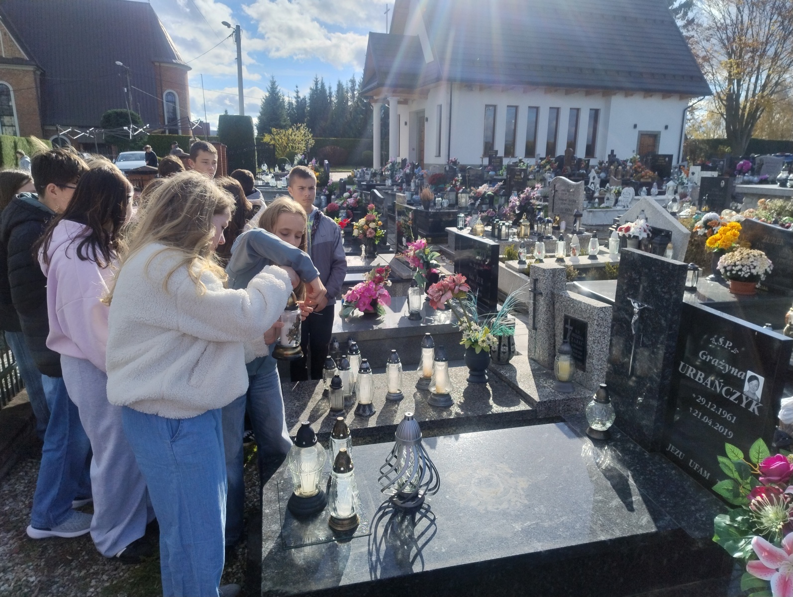 Społeczność szkolna również pamięta… Przedstawiciele Samorządu Uczniowskiego 28. października uczcili pamięć tych, którzy związani byli z naszą szkołą, zapalając symboliczne znicze na Ich grobach…