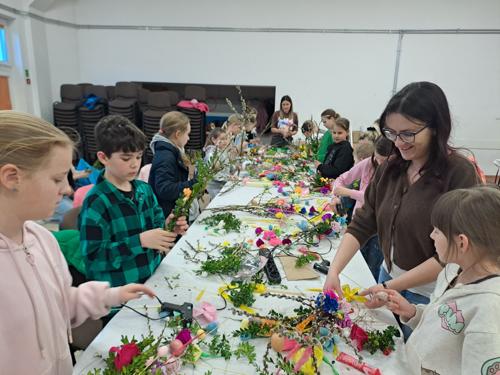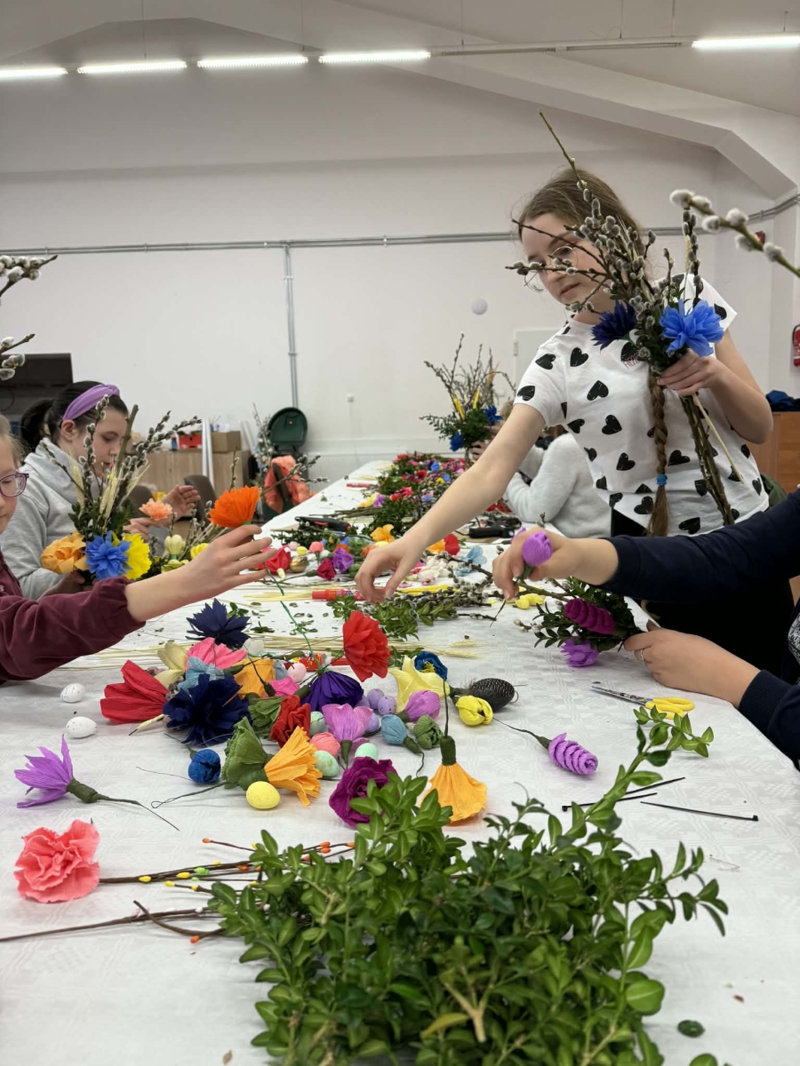 Podczas warsztatów, które odbyły się 11 marca w auli naszej szkoły, powstało wiele wspaniałych palm wielkanocnych. Pełni pomysłów uczniowie wraz z rodzicami z wielką ochotą tworzyli piękne i oryginalne kompozycje. Przede wszystkim jednak była to wspaniała, twórcza zabawa oraz miło spędzone popołudnie! Warsztaty zostały zorganizowane przez Radę Rodziców, a prowadziły je wspaniałe i utalentowane mamy naszych uczniów: pani Adriana Żur i pani Małgorzata Gargas. Serdecznie dziękujemy!